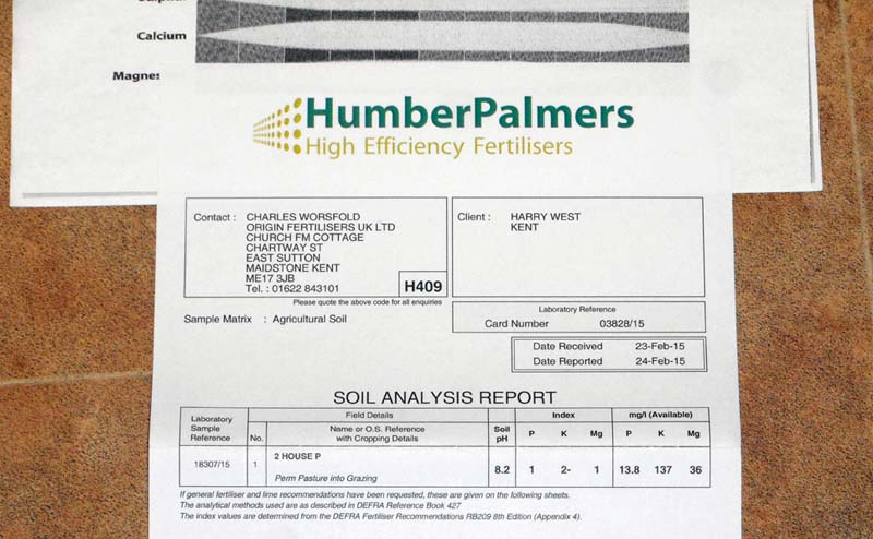 Soil sampling is sent off to a laboratory for a printed result to show what nutrients and goodness are in the ground. The results show what is in the ground and what is lacking, including levels of potash, acid, magnesium, sulphur and nitrogen for example.